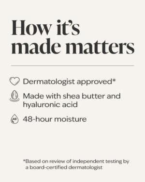 - Made with shea butter and hyaluronic acid.