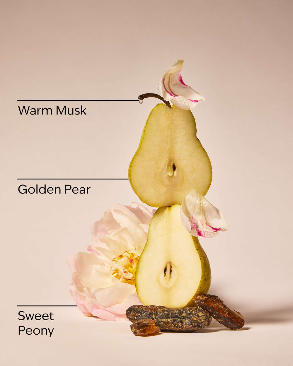 Fragrance notes: sweet peony, warm musk and golden pear.