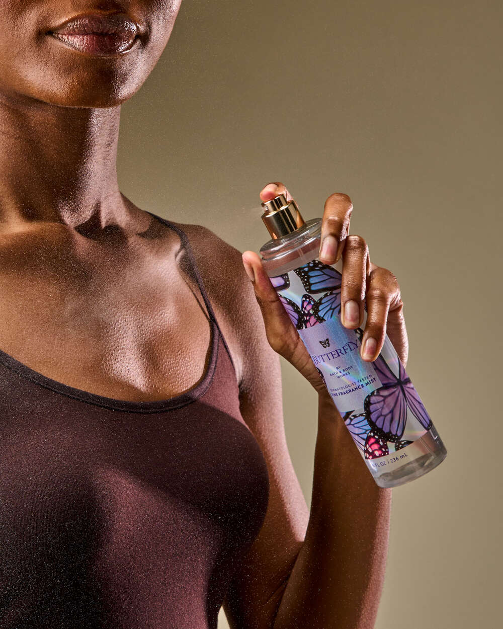 - Floral, fruity fragrance in a mist as light as a butterfly’s kiss.