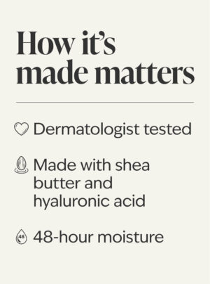 - Made with shea butter and hyaluronic acid