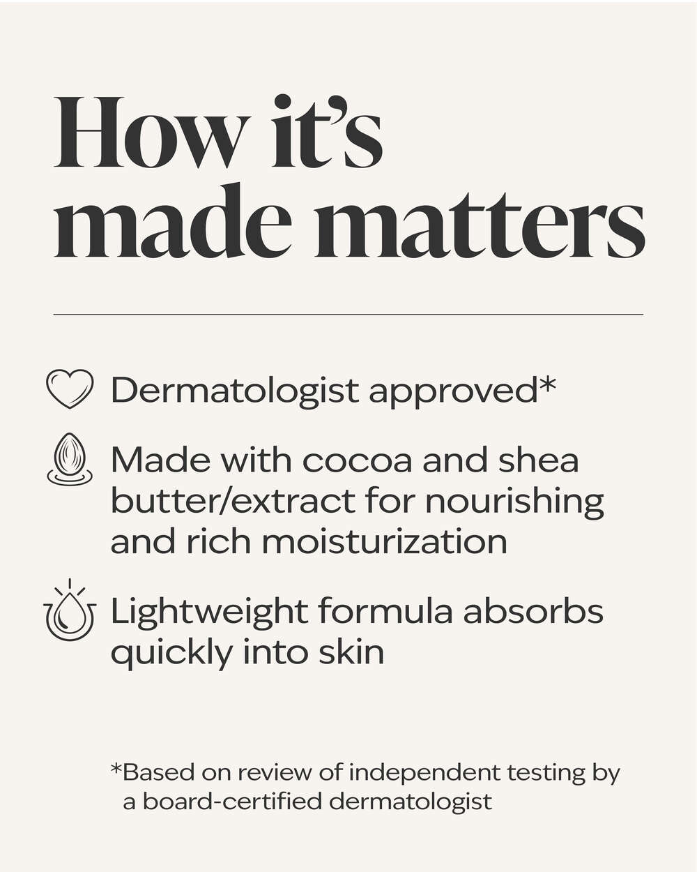 - Dermatologist approved (based on review of independent testing by board-certified dermatologist).