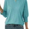 - Details: Warm up or cool down with this essential 3/4 sleeve t shirts, featured in an loose fit and Pleated sleeve design with sew seaming front for a lived-in look.