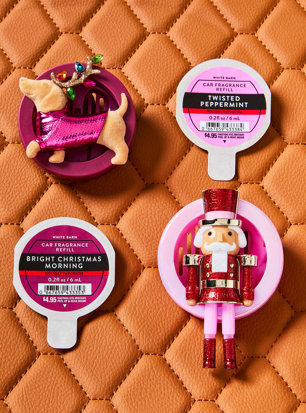 Need a sidekick to prance along for all your yuletide errands? This darling dachshund is up for it. All decked out in an adorable sweater and antlers, this dog is ready to dash—while adding gorgeous fragrance to your car.