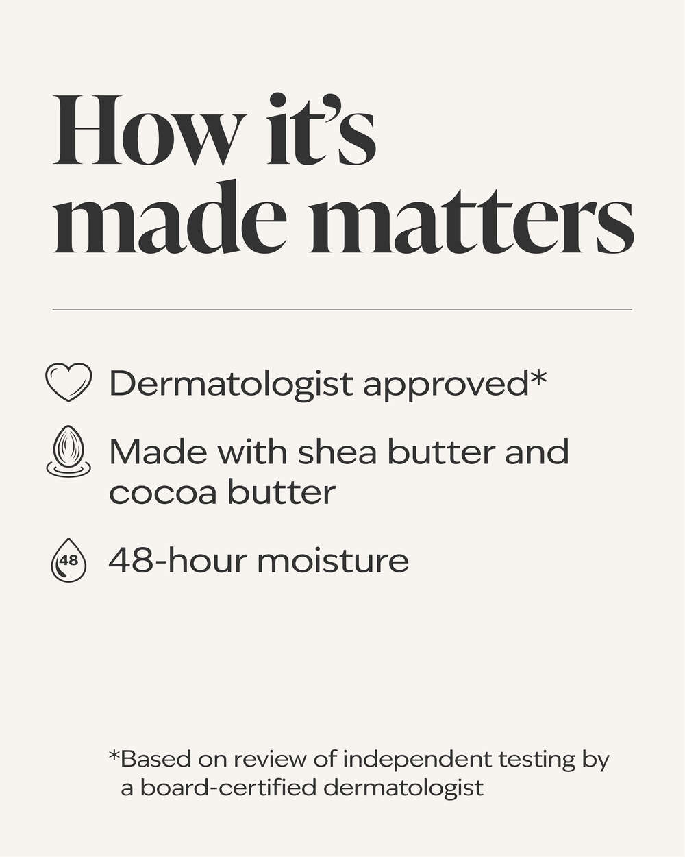 - Dermatologist approved (based on review of independent testing by a board-certified dermatologist).