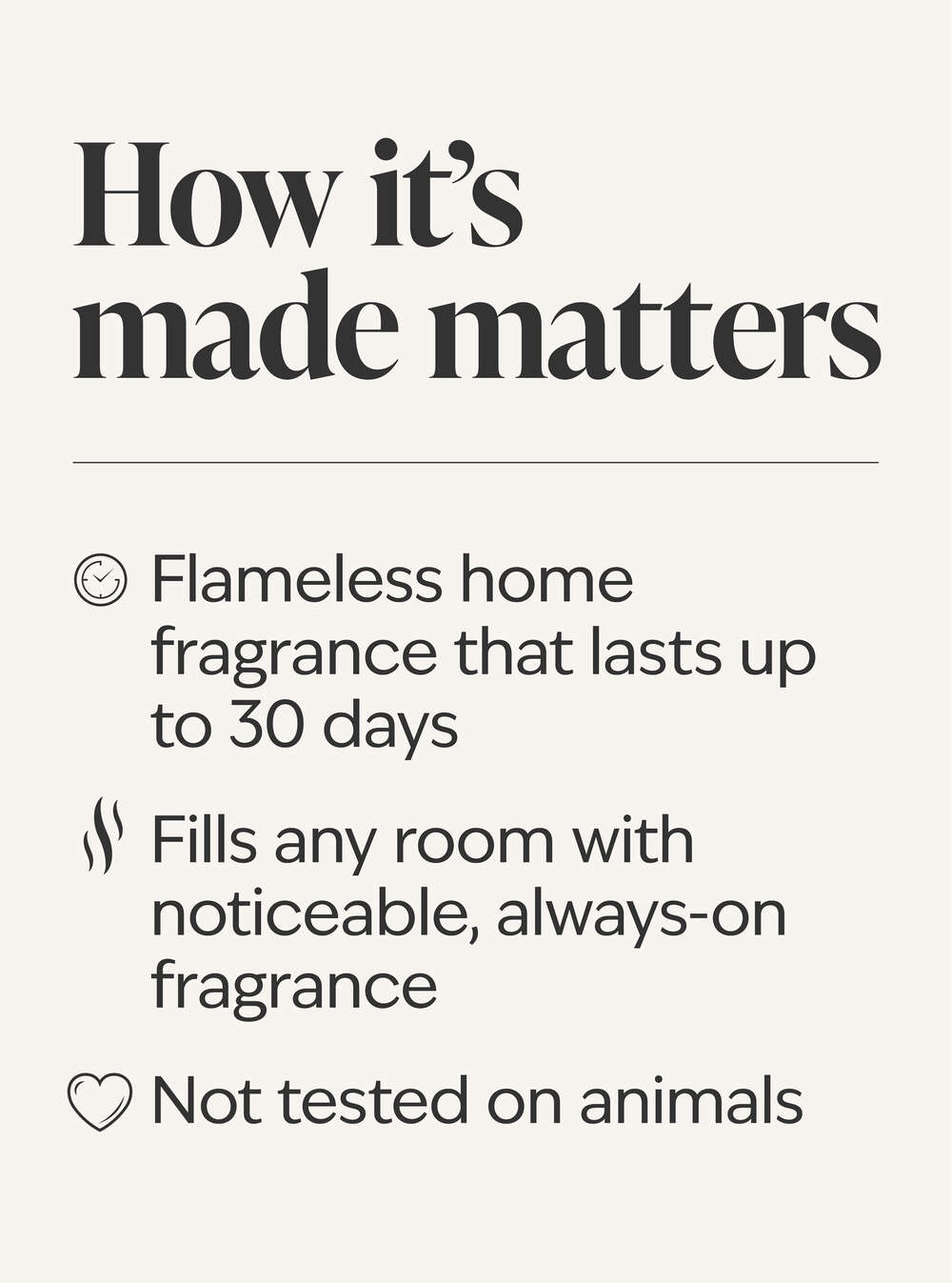 - Flameless home fragrance that lasts up to 30 days
