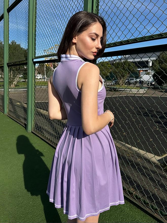 - Unique Design: Tennis dress features ribbed polo collar, classic contrast binding and flowing pleated hem for a sporty and youthful look