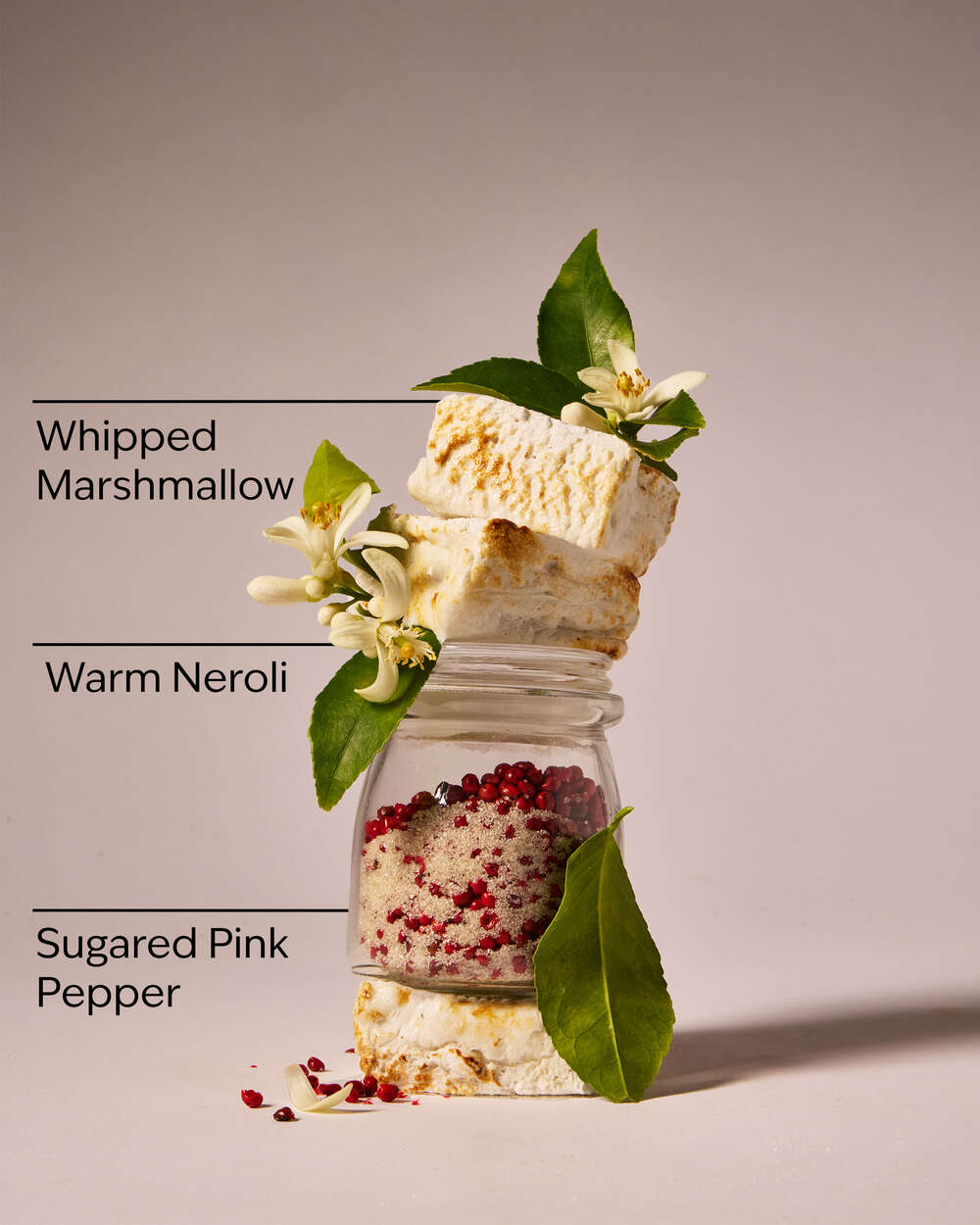 Fragrance notes: sugared pink pepper, warm neroli and whipped marshmallow.