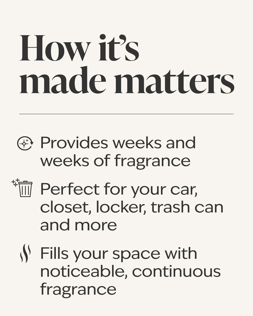 What it does: diffuses amazing, long-lasting fragrance wherever you hang it.