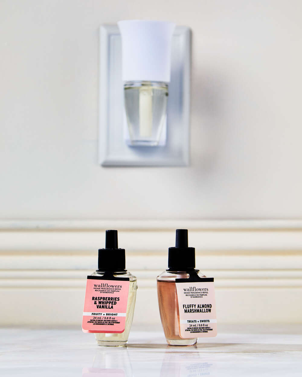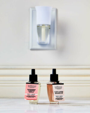 - Because Wallflowers refills contain fragrance oils that may damage finished surfaces and some plastics, always keep a 12″ clearance above your plug to prevent damage to surrounding surfaces.