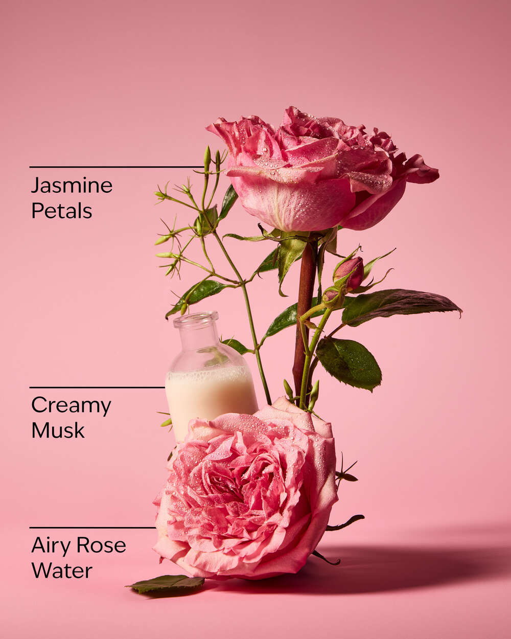Fragrance notes: airy rose water, jasmine petals and creamy musk.