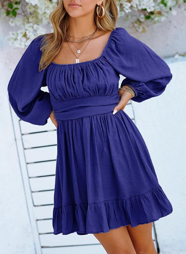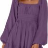 - Soft Material:The High-Quality Material Makes The square neck dress Fluffy And Warm, Which Keeps From Rubbing Your Skin. The Decent Thickness Bring You Cosy And Perfect Experience In Various Temperatures While Not Being Seen Through. ruched bust, smocked waist,Shirred Elastic Wais,A line, slim fit,swing and elegant vintage dress.
