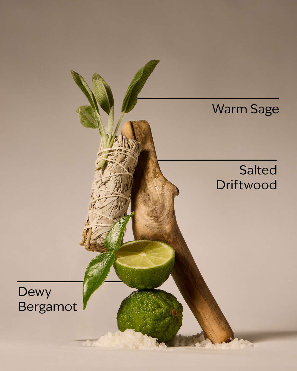 Fragrance notes: dewy bergamot, warm sage and salted driftwood.