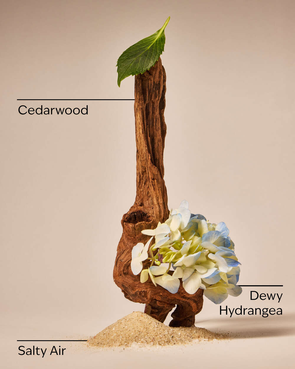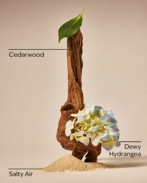 Fragrance notes: dewy hydrangea petals, salty air and cedarwood.