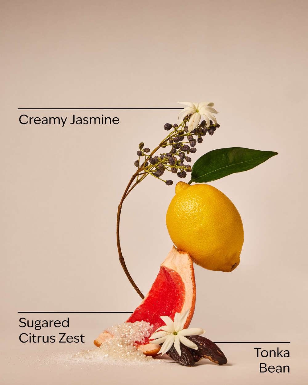 Fragrance notes: sugared citrus zest, creamy jasmine and tonka bean.