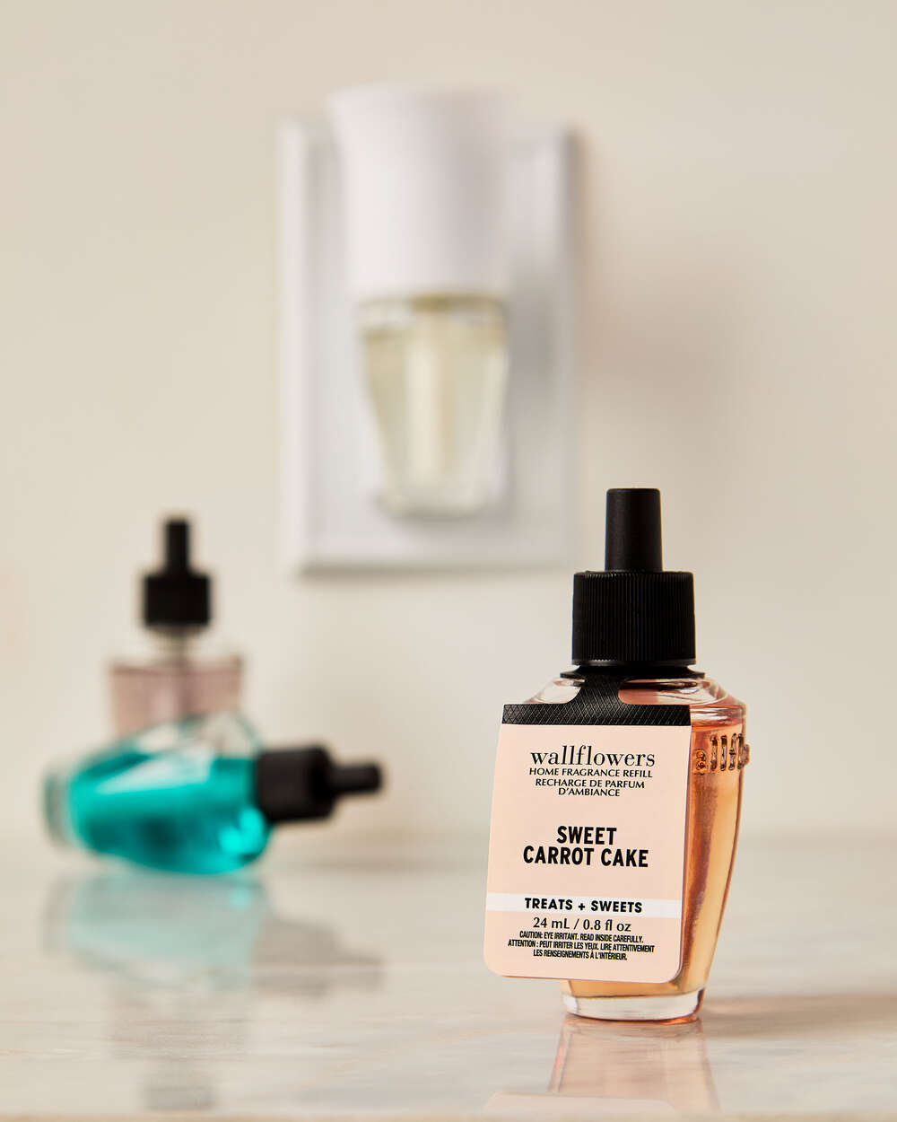 - Because Wallflowers refills contain fragrance oils that may damage finished surfaces and some plastics, always keep a 12″ clearance above your plug to prevent damage to surrounding surfaces.