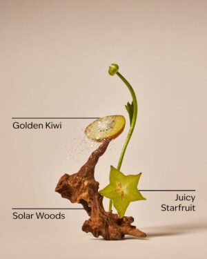 Fragrance notes: golden kiwi, juicy starfruit and solar woods.