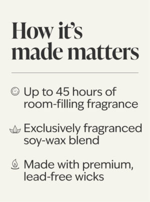 Always trim wick to 1/4 inch before lighting and keep debris out of wax pool. Never burn longer than 4-hour intervals. Set candle on heat-resistant surface and avoid drafts. Always burn within sight and extinguish before leaving room. Don’t burn near things that catch fire. Keep away from children and pets. Don’t extinguish with water. Always let wax harden before relighting, touching or moving.
