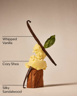 Fragrance notes: whipped vanilla, cozy shea and silky sandalwood.