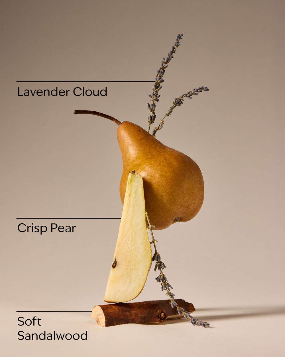 Fragrance notes: crisp pear, lavender cloud and soft sandalwood.