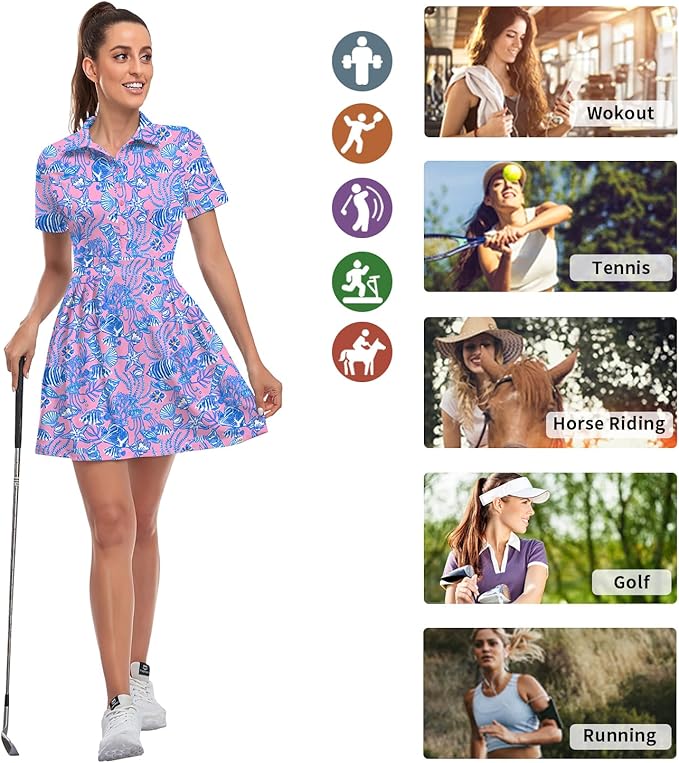 - [Moisture Wicking Sun Protection Dress] Golf Uniform Dress with UPF 50 sun protection fabric blocks harmful UV rays, provides excellent protection against sunburn. Moisture-wicking and Breathable fabric keeping you cool, comfortable and sweat free even when exercise in hot conditions.